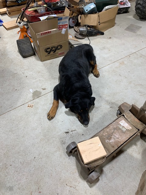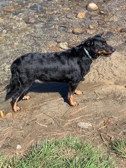 We currently have Remmy, a Beauceron, who although is a breed that originated in the North of France is the parent breed to both the Rottweiler and the Doberman which are both claimed as German breeds. The Beauceron also is related to the German Shepherd and is a herding dog. Our Remmy will sidle up beside you and lean on you if he wants you to go another direction. But he is gentle and craves attention from anyone who comes to visit. Since this breed is not that popular in the US, many people ask if he is a Rotty.