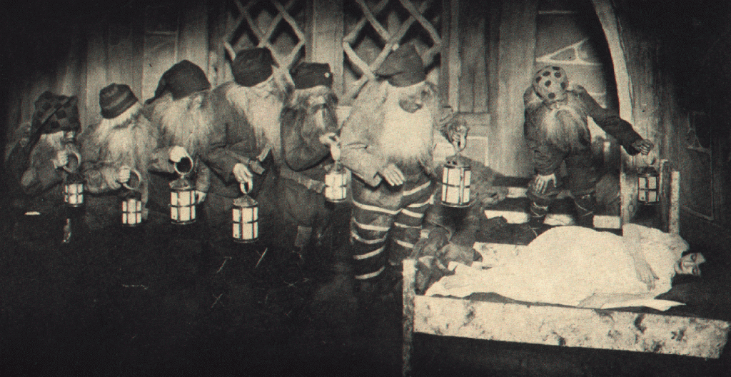 Dwarfs ought to be ugly of course, but not in that way. And the dwarfs’ jazz party was pretty bad. I suppose it never occurred to the poor boob that you could give them any other kind of music. But all the terrifying bits were good, and the animals really most moving: and the use of shadows (of dwarfs and vultures) was real genius. What might not have come of it if this man had been educated–or even brought up in a decent society?