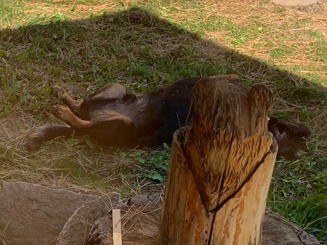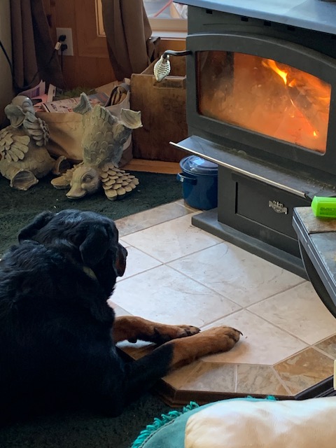 Autumn is a season when we have wood on our minds. We live in a cabin in the woods. We have a working wood splitter and this is the time of year we make sure there is enough firewood stacked and available for our wood stove where the dog likes to stay warm.